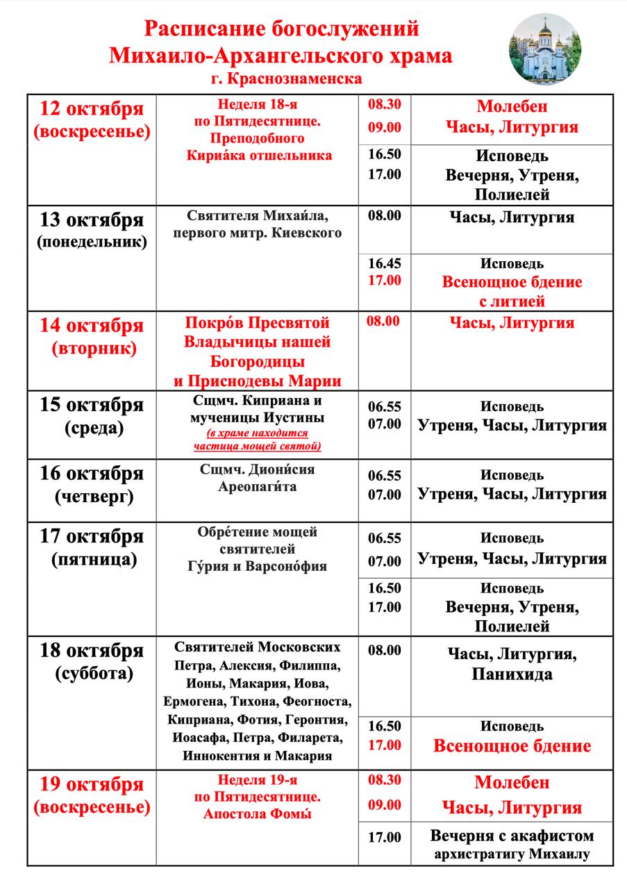 РАСПИСАНИЕ БОГОСЛУЖЕНИЙ